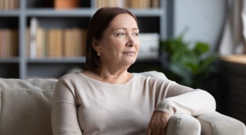 Pensive,Senior,Woman,Sit,On,Sofa,In,Living,Room,Look | Psychiatry